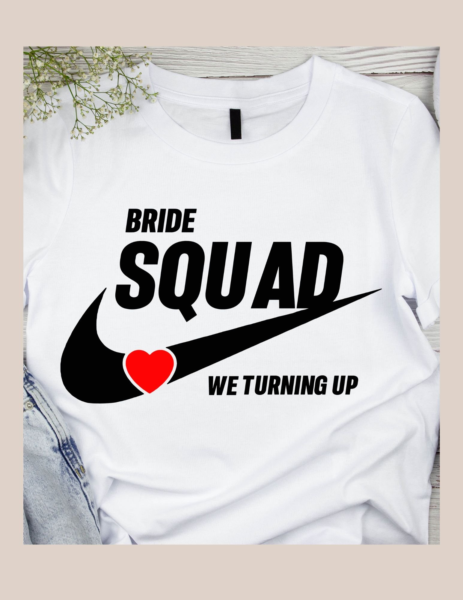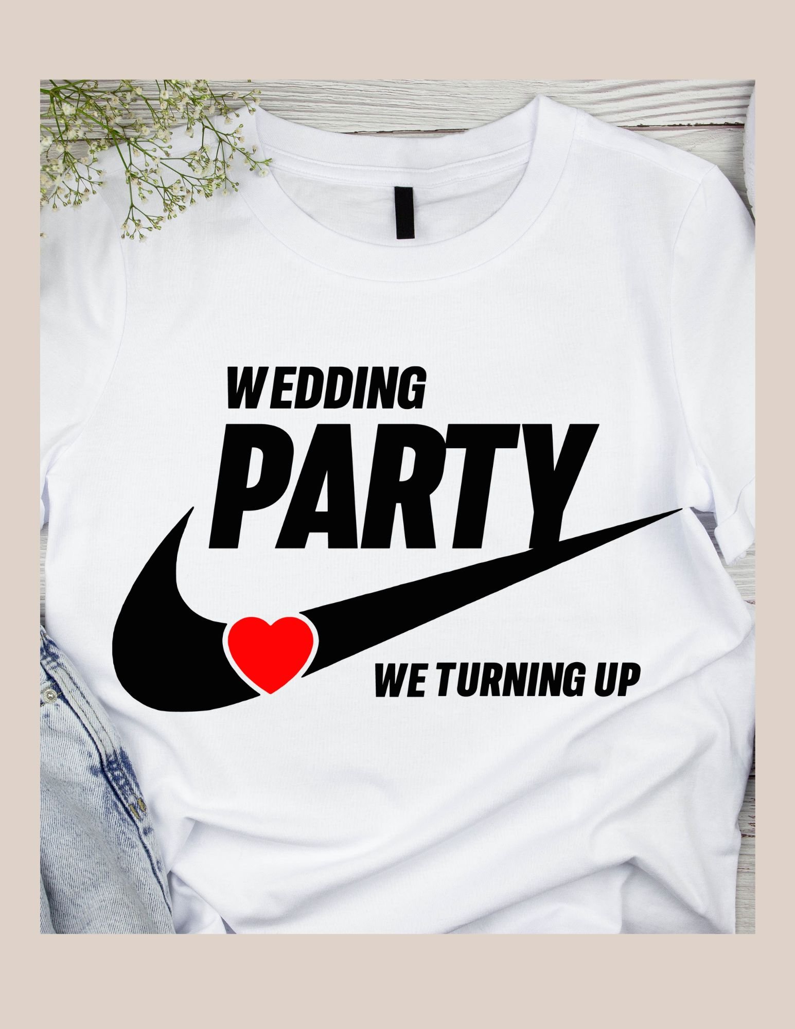 Celebrate your love story in style with our Wedding Party Heart-Swoosh Tee Collection — featuring a unique swoosh-inspired design with a heart incorporated into the graphic. This modern, minimal, and bold look creates the perfect matching set for the Bride, Groom, Bridal Squad, Groom’s Tribe, and the entire wedding crew.